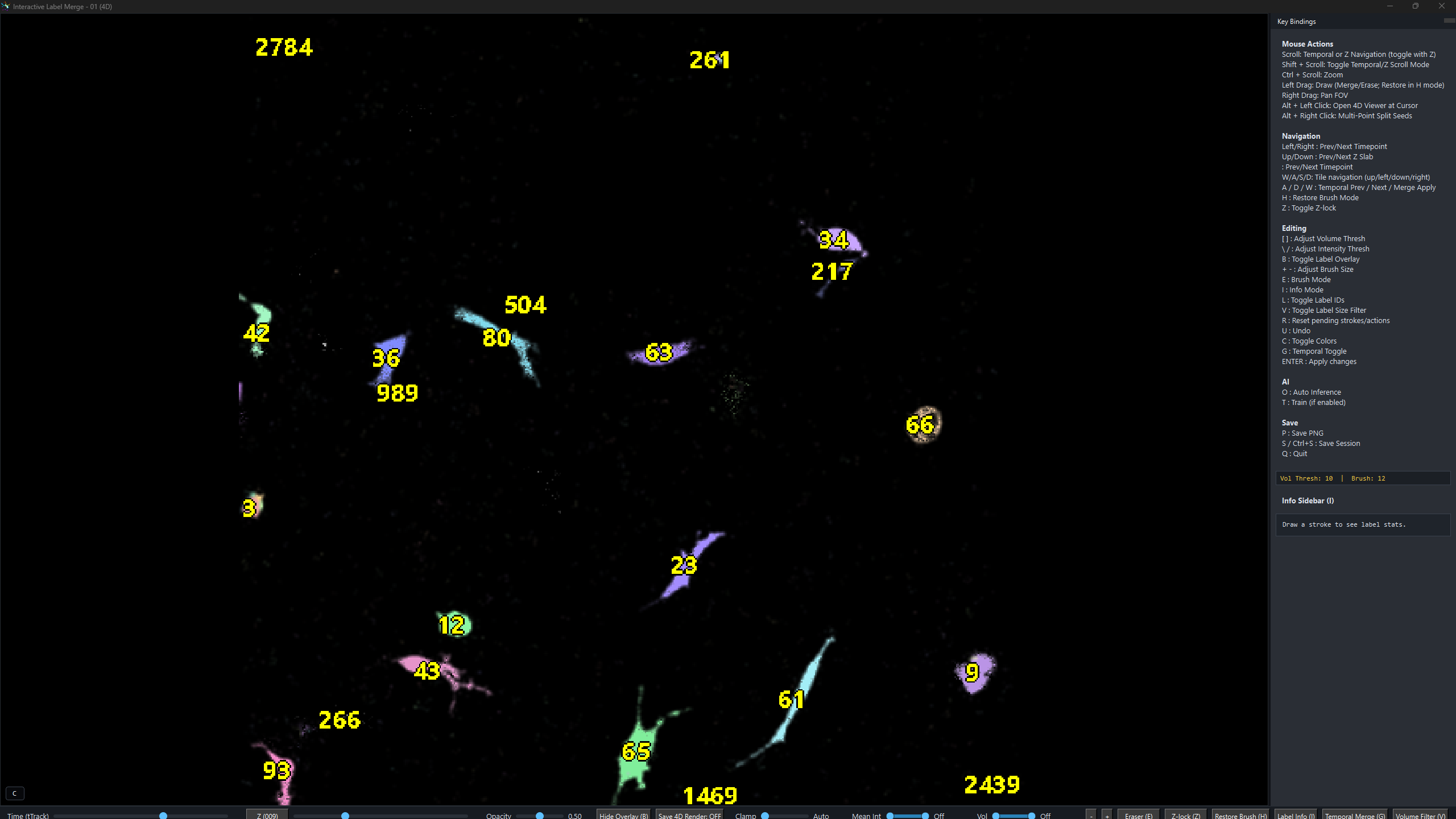 Navigate persistent labels across time, inspect cell identities, and correct local segmentation issues without exporting to a separate manual curation stack.